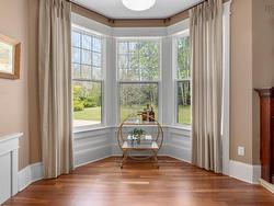 This stunning home sits on a 33,800 sq ft park like lot tucked away on a quiet cul de sac in the city. The privacy and serenity that this property offers doesn't come along often while still being so close to all amenities. Once inside you will be treated with Cherrywood floors, dramatic architecture with lots of openness and high ceilings. The large sunken living room offers a wood burning fireplace and two large sets of garden doors leading to the backyard. A large gourmet kitchen with sun filled windows overlook the beautiful backyard and has an adjoining breakfast room where you can sip morning coffee while seated on the oversized window bench. There is also a formal dining room across the hall. On top of all of this, is a den with a propane fireplace and a family room with backyard access. Rounding this floor off, there is a 3pc bath, entrance to the double attached garage and a mudroom with outside access. Travel upstairs on the elegant winding staircase to an expansive landing where you will find 4 generous sized bedrooms, laundry room and a 3pc bath. Let's not forget about the amazing primary suite with a walk in closet & a beautifully appointed 5 pc ensuite. As a pleasant surprise, there is a bonus room off of the primary that could be used as a private retreat, nursery, home gym or home office with its own separate entrance. After a long day come home and wind down in the covered hot tub, this home truly is a show stopper. Be sure to view the virtual tour!