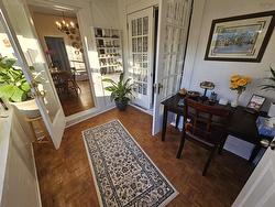 This home welcomes family, and she's such a beauty I guarantee she will not disappoint. Recently upgraded where it counts - kitchen, primary bedroom, ensuite bath, and with new central heat pump and electrical upgrade. Also with recent touches throughout the home this is a great place for you and your family. And you can bring even more family - we have a completely self contained in-law suite! Perfect for the in-laws, the oldest child, or a tenant to help pay YOUR bills! There is ample space throughout the home with a fantastic sunroom that catches the late afternoon/evening sun, a main floor primary bedroom with ensuite, a beautiful and new kitchen, large living room and a welcoming foyer as well on the main floor. Heading to the second level we find three more bedrooms, a den/office area, the laundry up where the bedrooms are, and another full bath. Your family will fit here, guaranteed. The in-law suite, with its own entrance, features a full kitchen, a dining nook, 3 piece bath, living room and bedroom - private space, perfect for the in-laws or long term guests, children, tenants. Let's not forget the attached barn too - great space for storage, and features a full loft as well. Adding to this impressive home is the beautifully landscaped property, paved drive and outdoor patio deck. Sitting on a private and peaceful .34 of an acre you would almost never know you're in the heart of small town life. And you are - conveniences are a quick walk away, as is school. Drop in to see this beauty, she will not disappoint!