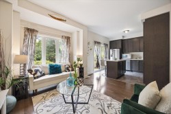 Elegant Ashley Oak Home with Serene Greenbelt Views. Backing onto a serene greenbelt, this property offers both luxury and privacy perfect for those who appreciate nature without sacrificing convenience. Nestled in the prestigious Bram West community, this beautifully appointed 3 +1 bedroom home offers timeless charm, thoughtful design, and a peaceful setting. Featuring gleaming hardwood floors on the main floor and broadloom in the bedrooms, soaring 9 foot ceilings, the home exudes warmth and sophistication and ambient lighting elevate the interiors, creating a seamless blend of function and elegance. The gourmet kitchen is thoughtfully designed with solid wood cabinetry, a breakfast bar, and a walkout to a custom-built deck ideal for quiet morning coffee or al fresco dining surrounded by nature. The main-floor den provides flexibility, perfectly suited as a fourth bedroom, home office, or study. Located minutes from Highways 407 and 401, this home is close to top-rated schools, parks, and essential amenities, grocery stores, gyms and much more. With a desirable layout and a tranquil setting, this property offers move-in readiness with room to personalize and grow.