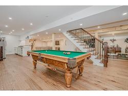 Gracefully designed for multigenerational living, this elegant home features a fully self-contained main floor 1-bedroom suite—perfect for extended family, private guests, or independent living with the comfort of being close. Whether it's in-laws, grown kids, or long-term visitors, everyone has space to feel at home—with a little luxury, and a lot less stress. Discover the epitome of luxury living with over 7500 sq ft of finished living in this stunning country property, just minutes from city amenities situated across from the exclusive Hidden Lake Golf Course. This expansive home features four generously sized bedrooms on the second floor, complemented by two well appointed shared bathrooms. The main floor boasts a serene primary suite with an ensuite bath and walk-in closet, while the heart of the home is a chef’s dream: an expansive kitchen outfitted with granite countertops, a convenient pot filler, a gas cooktop, built-in oven, walk in pantry and two dishwashers. The east wing offers a thoughtfully designed two-piece bath, a laundry room with a pet wash station, and a self-contained suite complete with a spacious bedroom, massive bathroom, kitchen with quartz island, and cozy family room with a fireplace. The fully finished basement adds even more appeal, featuring an exercise room, a four-piece bath, a wine room, a wet bar, a recreation room with a pool table, and a golf simulator area, perfect for entertainment and relaxation. Step outside to the huge covered composite deck featuring a fireplace, ideal for gatherings or tranquil evenings, all set on 0.69 acres with an ideal space for an inground pool. Park all of your cars in the 2 attached garages (double and 2.5 car). Experience the perfect blend of tranquility and modern luxury in this exceptional home.