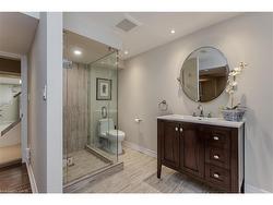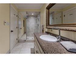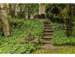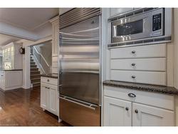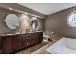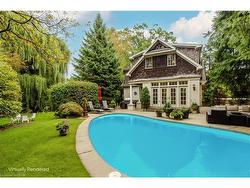 Rare opportunity to own a magical property across from the water with a double wide lot of 120 ft frontage. This South Burlington gem with pool is a character-filled 2 Storey retreat with an oasis yard for any nature lover. Just steps from the lake and minutes to the golf, country club and LaSalle Park. With 3,886 sqft of total living space, it presents a unique opportunity for growing families seeking space, lifestyle, and timeless charm in one of the city’s most coveted locations. Enjoy the serenity of a quiet residential setting while being only minutes from schools, parks, shops, dining, and all major amenities. From the moment you arrive, the curb appeal is undeniable—mature trees, professional landscaping, an interlock walkway, and a wraparound porch set the tone for the warmth inside. The open-concept main floor showcases hardwood throughout, anchored by a chef’s kitchen blending modern finishes with classic design. Featuring a spacious island with breakfast bar and wine storage, granite countertops, custom cabinetry, SS appliances, and a cozy window seat, it flows into the dining area & coffee bar with seamless access to the yard. A formal living room with fireplace and a sunken family room with coffered ceilings, wall-to-wall windows, gas fireplace, and walkout make this a true gathering hub. Upstairs, the expansive primary suite is a private retreat with dual walk-in closets and a spa-like 5pc ensuite complete with soaker tub, dual vanity, & oversized glass shower. Two additional bedrooms each boast their own luxurious full ensuites, while the convenience of upper-level laundry adds everyday ease. The fully finished walkout basement extends the living space with a spacious rec room, games room, and an additional full bath. Outside, the lifestyle continues in a fully fenced backyard with ample green space for kids and pets, interlock patio, built-in BBQ area, shed, and a concrete gunite pool—perfect for summer entertaining.