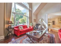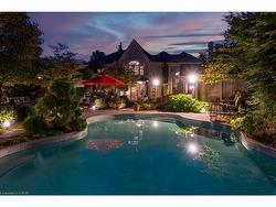Set on a breathtaking 70’x209’ private lot in Burlington’s prestigious Roseland community, this stately stone and stucco home offers over 5,850 sq ft of finely curated living space across three levels. Showcasing timeless elegance and old-world craftsmanship, this home impresses with custom millwork, plaster crown mouldings, custom built-ins and rich hardwood, limestone and porcelain floors. Step into a grand foyer that leads to elegant formal dining and living rooms with a gas fireplace then discover the heart of the home: a chef’s dream kitchen featuring a sprawling island, top-of-the-line appliances, walk-in pantry, sunlit breakfast area with a walk out to the stunning gardens. Adjoining the kitchen is the great room with a two-storey ceiling, gas fireplace and a wall of windows framing your own backyard paradise. The main level also features a home office, stylish powder room and custom mudroom with access to an oversized double garage with epoxy floors. Upstairs, unwind in your primary retreat with vaulted ceilings, sunlit walk-in closet and luxurious 4-piece spa-inspired ensuite with steam shower. A loft-style library with built-in bookcases overlooks the great room and three more spacious bedrooms include a private guest suite, a shared 4-piece bath and convenient upper-level laundry. The lower level features a home theatre room, hobby room, second laundry, fitness studio with beverage centre and 3-piece bath and storage. Outside, the resort-style backyard is an entertainer’s dream featuring a 20’x40’ saltwater gunite pool (‘19), stucco pool house (‘15) with kitchenette, change room and garden storage, a pergola-covered stone patio (’19) with gas fireplace, dramatic landscape lighting and tranquil stone water feature, surrounded by stunning, lush, mature gardens. Just steps to top schools, parks, downtown and the lake, this distinguished home with its meticulous attention to detail exudes warmth and comfort and will appeal to the most discerning buyer.