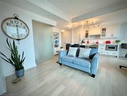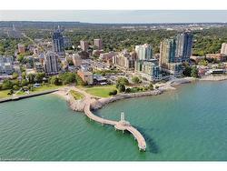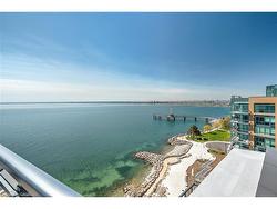 AFFORDABLE LUXURY ON THE WATERFRONT! Beautiful one bedroom condo, with high end finishes, located in the prestigious Bridgewater Residence. Bridgewater is waterfront living at its finest. Exceptional amenities include a huge 8th floor outdoor terrance with BBQs and spectacular views of Lake Ontario. Other amenities include 2 fitness centres, party room with billiards and piano, spa like indoor pool, boutique style lobby with 24 hour concierge , direct access to Isabells restaurant, Pearl Cafe and the Pearle Hotel. Enjoy monthly social events and get togethers. Located directly on the gorgeous Waterfront Trail on Lake Ontario, along the Brant Street Pier and Spencer Smith Park. The condo features beautiful sunrises from the East facing balcony. Open concept living room /dining room/ kitchen. The kitchen features beautiful white cabinetry, huge island and Thermador appliances. The kitchen/ dining room/ living room area is pretty spacious, with room for more furniture and flexible configuration. Heated floors in the 4 piece bathroom; bedroom features a large double closet. Beautiful trim work throughout. Located in the heart of Burlington, walkable to vibrant shops and a variety of many restaurants. Included are one underground parking spot and one storage locker (both are owned). Book your showing today.