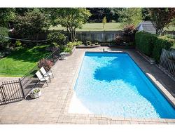 Welcome to Your Dream Family Home in Shoreacres Nestled on a quiet cul-de-sac in Burlington’s highly sought-after Shoreacres neighbourhood, this rare original one-owner home blends modern updates with family-friendly design—just a short walk to Lake Ontario, parks, and top-rated schools. Offering over 3,700 sq. ft. of finished living space, this beautifully updated 4+1 bedroom, 2 full bath, 2 half bath home is perfect for growing families. The main floor features a custom kitchen with quartz countertops, a large centre island, and premium cabinetry, opening to a bright dining area and a vaulted family room with fireplace—the heart of the home. Step outside to a private backyard oasis, ideal for entertaining and everyday relaxation. You’ll also find a dedicated home office, laundry/mudroom, powder room, and garage access, all finished with hardwood and tile flooring. Upstairs, enjoy four spacious bedrooms and two full bathrooms, including a serene primary suite with walk-in closets and a spa-like 5-piece ensuite. The finished lower level adds versatility with a fifth bedroom, a large recreation room, and plenty of storage—perfect for teens, guests, or family movie nights. Outside, the fully fenced backyard backs onto quiet greenspace and features a saltwater pool, Hayward filter and gas heater, interlock patio, and lush landscaping, with wrought iron fencing safely enclosing the pool area. Recent updates include: roof, front and back doors, furnace, A/C, and more—offering peace of mind for years to come. Located in the Tuck and Nelson school district and minutes from Paletta Lakefront Park, Nelson Park, downtown Burlington, and major highways—this home truly has it all.