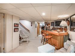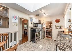 Located on a small crescent across the road from the lake and close to downtown.This bungalows two living levels add up to approximately 2400 square feet of finished living space. You can walk down town or to the Burlington golfclub. Living Rm has a warm and cozy Stone Fireplace. There is easy access to the back deck from the sliding dining room door . Parents can watch their children play in the back yard through a well placed kitchen window. Upgrades in the kitchen include cupboards, pot drawers,granite counter tops,mirrored backsplash, large skylight and ceramic flooring.Main bath upgrades include, whirlpool soaker tub with marble surround,pedstal sink,walk in shower and marble flooring.The lower level offers a large guest room,rec room ,music room (den),laundry room and a professional work shop.Oh Yes the very private back yard also has a pond and water fall for gold fish or water gardeners . Also important to note is the , "Room for Four" "Lots of Fun" Sundance Hot Tub. Improvements are a pleasure but location is forever so check this one out .There is more to say but I am running out of space so call for an appointment to view.