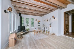 Tucked away in the scenic hamlet of Alton, Ontario, just steps from the area's best hiking trails, world-class golf, local artisan shops & fine dining, this charming modern rustic log home is a rare opportunity to own a slice of serenity w/o compromising on convenience. Offering a perfect blend of timeless character & modern comforts, this 3+1 bed, 2 bath home sits on a beautifully private 1-acre lot. As you approach the house, you're immediately struck by the inviting water feature & the warmth of the log/timber construction, which blends seamlessly into the natural surroundings & driveshed w/power ideal for hobbyists, extra storage, or a workshop. Step inside & be greeted by open concept living/dining/kitchen area boasting exposed log beams, wide-plank hdwd floors anchored by a massive wood-burning fireplace crafted from reclaimed brick, spacious kitchen w/breakfast bar, an abundance of counter space & open to the dining area, perfect for hosting or enjoying a quiet night in. Versatile main floor bedroom offers flexible usage as a home office, formal dining room, or den. The great rm is a stunning space featuring soaring ceilings, propane fireplace, oversized windows & a w/o to the back deck, filled with sunshine by day & warm glow by night. Updated 3-pc bath w/walk-in shower, stylish finishes & convenient main flr laundry. Upstairs, you'll find 2 generously sized bedrooms offering ample closet space, warm wood details, peaceful treetop views & updated 4-pc bath w/modern fixtures & a classic clawfoot tub. Primary bedroom is enhanced by a bonus loft space that overlooks the great room below. Use it as private reading retreat, yoga/workout area. The lower-level rec room is perfect for hosting gatherings w/bar, w/o to backyard, & add'l bedroom. In the backyard, soak your cares away in the hot tub, gather w/family & friends around the massive firepit, or enjoy outdoor dining and entertaining under the covered gazebo. Bonus bunkie & pizza oven completes this backyard.