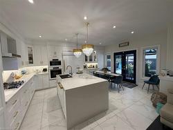 Stunning Home on a Prime West Mountain Court – A True Oasis!Welcome to this exceptional property nestled on a quiet court in the highly sought-afterWest Mountain area. From the moment you arrive, you’re greeted by a grand double-doorentry, soaring 2-storey foyer, elegant chandelier, oak staircase with wrought ironspindles, and gleaming 24”x24” tiles.The main level features a seamless open-concept layout with a spacious dining and familyroom adorned by a modern fireplace. The gourmet kitchen is a showstopper—complete withbuilt-in stainless-steel appliances presently professionally wrapped in white vinyl(including a water line for the fridge), gas stovetop, crown molding, quartz countertopsand backsplash, oversized island, pot lights. Sliding doors lead to a breathtaking,fully fenced backyard that radiates a Caribbean resort-style vibe.Upstairs, you’ll find a luxurious primary suite that includes a walk-in closet and aspa-like ensuite with double vanity, soaker tub, and separate shower. Along with threegenerously sized bedrooms—two with walk-in closets and a completely renovated five piecebathroom. This home is completely carpet-free for easy maintenance and a modern feel.The beautifully finished in-law suite in the basement offers its own eat-in kitchenette,stylish 4-piece bath, two bedrooms, and a cozy family room with fireplace—perfect forextended family or rental potential.The exterior is finished in an elegant combination of stucco, stone, and brick. Stepoutside to your personal paradise: an inground heated saltwater pool, hot tub, stainlesssteel outdoor kitchen with gas BBQ under a covered patio, space for a 12-seat diningtable, cozy lounge area, and a dedicated gas fire pit zone for evening gatherings.Room Sizes are Approximate. Realtor is one of the Sellers.