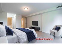 Spacious and bright, this 2-bedroom, 2-bath condo in the heart of Ancaster’s Meadowlands offers over1,150 sq ft of comfortable living with a smart layout and plenty of natural light. The living room featuresa cozy gas fireplace and opens to a private balcony with a quiet treed view — a rare, calming backdropin the community. The primary bedroom includes a full ensuite with a soaker tub, while the secondbathroom is finished with a walk-in shower. Freshly painted walls add a modern touch, with plenty ofroom to personalize.Set on the preferred second floor, this home provides a safe and accessible option for downsizers andretirees alike. The well-managed building includes an underground parking space with a private storagelocker located directly behind, as well as amenities such as a car wash bay, workshop, seasonalstorage, party room, gazebo, and ample visitor parking. A walking path just steps from the propertyleads to a landscaped reservoir area with trails and greenery, perfect for a morning walk or eveningstroll. Condo fees conveniently include water, building insurance, and all exterior maintenance.Located just steps from shops, restaurants, Costco, Shoppers Drug Mart, and more, this condocombines everyday convenience with peace and quiet — an excellent opportunity in a highlysought-after Ancaster location.