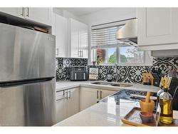 Welcome to this bright and stylish 1-bedroom, 1-bathroom condo offering 618 square feet of comfortable, well-designed living space on the 4th floor of a quiet and well-maintained building in East Hamilton. The updated kitchen features quartz countertops, a double undermount sink, and a convenient breakfast bar, all open to the spacious living area with walk-out to a private balcony—perfect for enjoying morning coffee or evening sunsets. The bedroom is generously sized, and the unit offers great natural light throughout. Additional highlights include secure building entry, elevator access, low monthly condo fees, a clean and well-kept on-site laundry room, one dedicated parking space, and a storage locker just around the corner from the unit. The building is surrounded by mature trees and green space, with plenty of visitor parking available. Located just minutes from the Red Hill Valley Parkway, the Lincoln Alexander Parkway, and the QEW, this location is ideal for commuters. You’re also close to Red Hill Bowl Park and an entrance to the Red Hill Valley Trail, offering easy access to nature right outside your door. A fantastic opportunity for first-time buyers, downsizers, or anyone seeking move-in-ready, low-maintenance living in a connected and friendly neighbourhood.