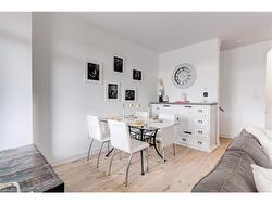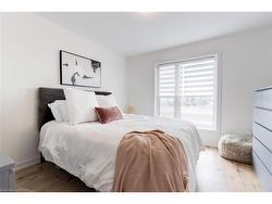 This rare freehold townhome offers nearly 1,300 sq. ft. of thoughtfully designed space in the sought-after Fifty Point / Community Beach area – just a short walk to the lake and seconds to the QEW. Tucked into a friendly neighbourhood and surrounded by parks, trails, and the harbour, it blends convenience with a relaxed, recreational vibe.Inside, you’ll find a bright, open-concept main floor with soaring 9-foot ceilings, a practical layout, and tasteful finishes perfect for both everyday living and entertaining. The kitchen features a functional sit-up island, ample cabinet space, and stainless-steel appliances, opening seamlessly to a spacious dining area and a sun-filled living room. Step through sliding doors to a private balcony with unobstructed views – ideal for morning coffee or evening BBQs.Upstairs features a spacious primary suite with a walk-in closet, a generous second bedroom, a stylish 4-piece bathroom, and laundry – all on the same floor for ease of living. The ground level includes a rare oversized walk-in storage room, plus an inside-entry single car garage with automatic door and additional driveway parking. Low monthly fees cover visitor parking, common elements, and snow removal.
