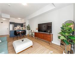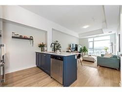 Welcome to your penthouse retreat at COMO Condos in Stoney Creek! This impressive penthouse suite features 9-ft ceilings, a bright open-concept layout, and oversized windows that fill the space with natural light. The modern kitchen is beautifully appointed with quartz counters and backsplash, soft-close cabinetry with gold hardware, an upgraded MOEN faucet and sink, and plenty of counter space for cooking or entertaining. The chic bathroom showcases upgraded tile work, recessed shower lighting, and ceiling tiles above the tub for a spa-like touch. The spacious bedroom with a walk-in closet and motorized roller blinds, provides both comfort and function, while the private balcony offers escarpment views and spectacular sunsets. With vinyl flooring throughout, elegant finishes, and a prime location just minutes to the GO Station, QEW, hiking trails, shops, dining, and Niagara’s renowned wineries, this penthouse combines convenience, sophistication, and lifestyle in one exceptional package.
