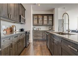 Welcome to the crown jewel of 1 Victoria — a rare, nearly 2,000 sq. ft. penthouse perched atop one of Kitchener's most coveted addresses. Situated in the heart of the Innovation District and steps from Google HQ, the future GO Train station, and the iON LRT, this exclusive residence delivers a vast living space, luxurious finishes and convenience in the centre Kitchener’s fastest-growing neighborhood. One of only four suites on the top floor, this three-bedroom, two-bathroom home offers unmatched privacy and scale. The corner primary bedroom is flooded with natural light from expansive windows on two sides and features a substantial ensuite along with a walk-in closet outfitted with built-in organizers. The master suite leads directly onto the massive, private terrace from which you can enjoy all day sun, a natural gas BBQ and sweeping views of the city below. The open concept design will allow you to entertain in style in the formal dining room or relax in the massive open-concept living area. The chef’s kitchen is a standout — equipped with designer appliances, a gooseneck faucet, and more storage than most detached homes. The granite counters offer enough surface area to please those who enjoy having a different countertop appliance for different tasks. This residence features engineered hardwood flooring throughout, soaring 10-foot ceilings, and custom window treatments with light-filtering or full privacy options in the bedrooms. Two parking spots — one with EV charging — and two private lockers complete the package. Residents enjoy access to exceptional amenities including a rooftop terrace with community gardens, a professional-grade fitness centre, theatre room, and party spaces. Luxury. Location. Exclusivity. This is penthouse living redefined.
