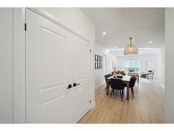 Discover your dream home in the heart of Kitchener's new, family-friendly Trussler West community. Nestled on a quiet street, this exquisite 2,382 sq.ft. residence blends tasteful modern finishes with timeless craftsmanship, creating a truly magnificent living space. From the moment you arrive, the home impresses with its classic brick facade and a double-car garage offering parking for four vehicles. Step into a bright, open-concept main level where 9-foot ceilings & continuous engineered hardwood floors establish a modern, airy atmosphere right from the foyer. The living and dining areas, illuminated by pot lights and chandeliers, create the perfect ambiance for both entertaining guests and quiet family evenings. The heart of the home is the stunning modern kitchen, a chef's delight featuring a large quartz centre island,custom backsplash,extended cabinetry, and stainless steel appliances. From here, slide open the doors to a walk-out deck. A main-floor office provides a quiet space for work or study. Upstairs, the primary bedroom serves as a personal sanctuary,a large walk-in closet, and a luxurious ensuite. Unwind in the elegant soaker tub or the spacious glass shower, and appreciate the privacy of a separate water closet and the convenience of double sinks. Three additional generous bedrooms share a well-appointed 5-piece main bath, thoughtfully designed with a water closet and double sinks to streamline morning routines. The home's potential continues with a large, unfinished basement-a blank canvas awaiting your personal touch. This Net Zero home is future-ready, with rough-ins for solar panels, an electric vehicle charger, and a basement bathroom and bar. Enjoy the perfect balance of tranquil nature, with the trails of Trussler Woods nearby, and commuter convenience, with easy access to Highways 7/8 & the 401. You're also just minutes from major shopping hubs like the Sunrise Shopping Centre. This is more than a house-it's the home you've been waiting for.