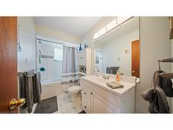 Welcome home to this updated bungalow with a practical layout and attached garage. Main level features a living/ dining room, renovated eat in kitchen, four piece bathroom and three bedrooms. One bedroom is currently being used as a den and has a walkout to back deck. Lower level offers a spacious recreation room, three piece bathroom, laundry room and storage space. Enjoy a fairy-tale backyard, perfect for relaxing or entertaining. Conveniently located near schools, shopping, and all Niagara Falls attractions. Features of the home include shingles replaced in 2020; Main bath redone in 2023, kitchen redone in 2025:Fridge,Stove,Dishwasher 2025