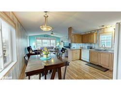 Visit REALTOR® website for additional information.Welcome to a rare offering in the sought-after Mini Lakes community—perfect for those seeking a quiet, low-maintenance lifestyle in a secure, gated neighborhood. This well-maintained year-round bungalow features stunning, uninterrupted lake views—an uncommon find here. Inside, the bright living room with a bay window flows into a spacious eat-in kitchen. With two bedrooms, a full bath, and in-home laundry, the layout is both comfortable and functional. Enjoy outdoor living on the large deck overlooking the water—ideal for relaxing or entertaining. Recent updates include the furnace, A/C, roof, and flooring. Mini Lakes offers a golf-cart-friendly lifestyle with a clubhouse, pool, and regular social events—just minutes from Hwy 401, shopping, and dining.
